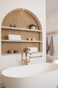 Heat pump HVAC is increasingly common, especially in all-electric projects. Where gas systems remain, builders may use high-efficiency furnaces with high-SEER air conditioners. Current cooling equipment often starts around SEER2 14.3 or higher, while premium systems may be two-stage or variable-speed. Heat pump water heaters are also becoming far more common. Solar PV is effectively standard for most new low-rise homes under Title 24, while battery storage is often added for resilience and peak-rate management.